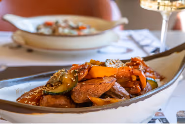 Pileći file, pirinač, paprika, crveni pasulj,kukuruz šećerac, dressing