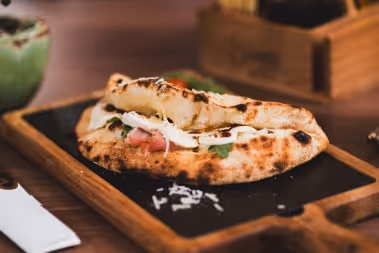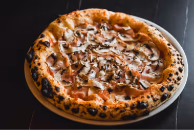 Pelat, mozzarela, dimljeni sir, govedja pršuta, vrganj