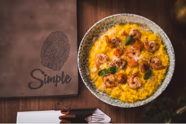 Fusilli, kozice, paradajz, masline, puter, parmezan, baby spanać