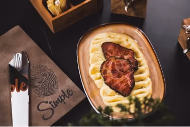 Simple pljeskavica, kobasica punjena sirom, dimljeni vrat, tortilja, kajmak, pekarski krompir