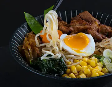 Pileći file, pirinač, paprika, mungo pasulj, grašak, bambus, šrgarepa, luk