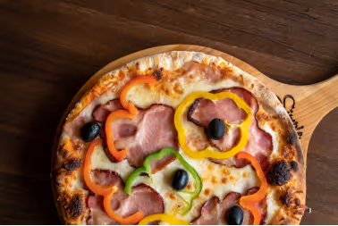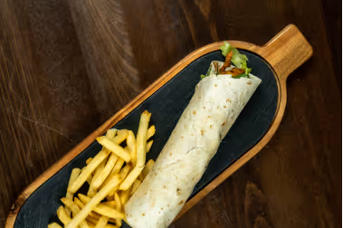 Jaja, šunka, mozzarella, cheddar, tortilja, paprika, tikvice, šampinjoni, mix zelenih, pomfrit